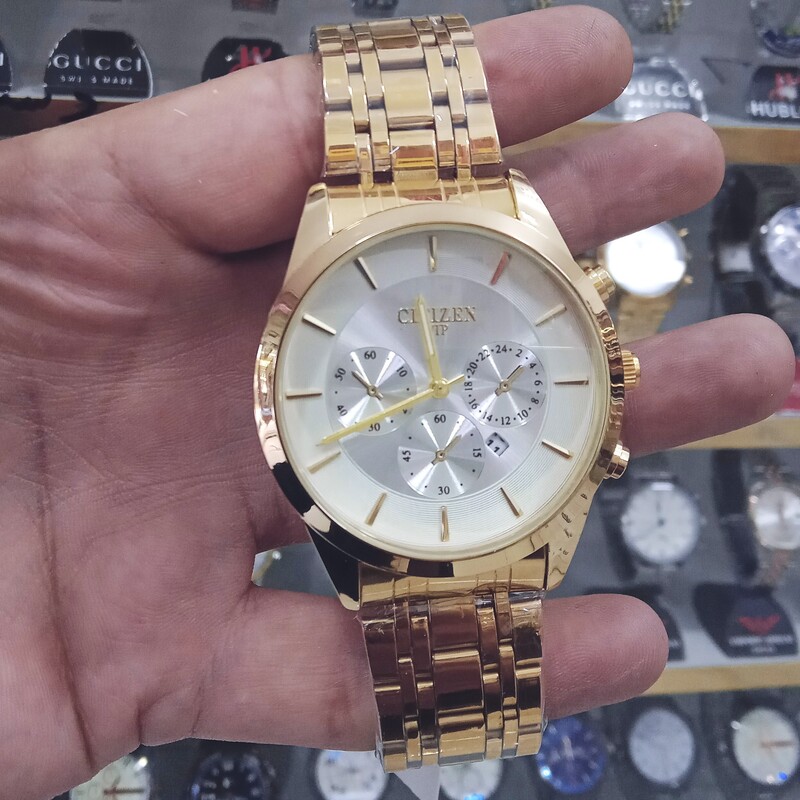 ساعت سیتیزن VIPمردانه تقویم داراستیل رنگ ثابت ضداب موتور ژاپن طرح 3موتور ارسال رایگان همراه با جعبه رایگان