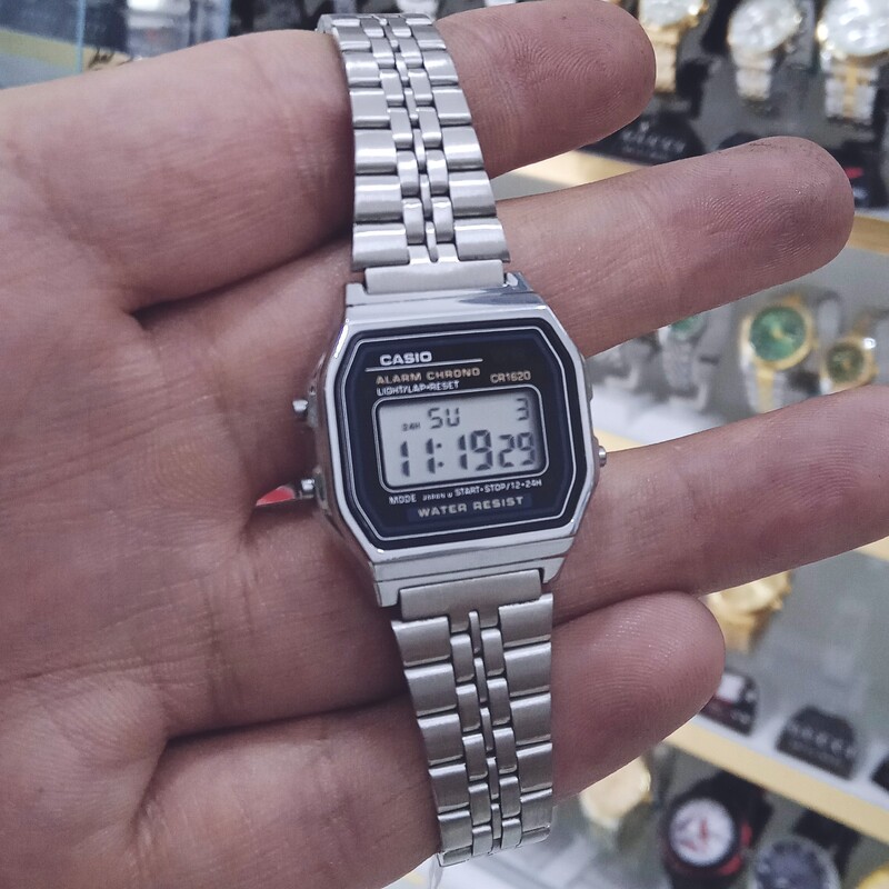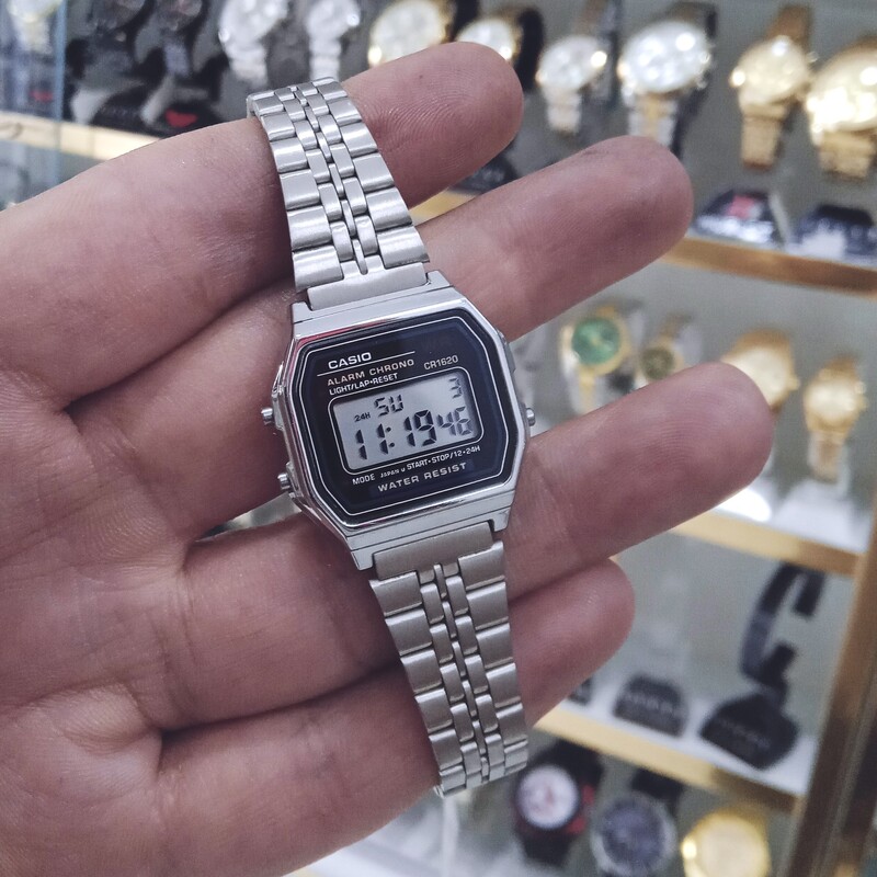 ساعت کاسیو زنانه نوستالژی کامپیوتری دیجیتال دارای آلارم کرنومتر چراغ تاریخ استیل رنگ ثابت ضدآب همراه با باتری اشانتیون