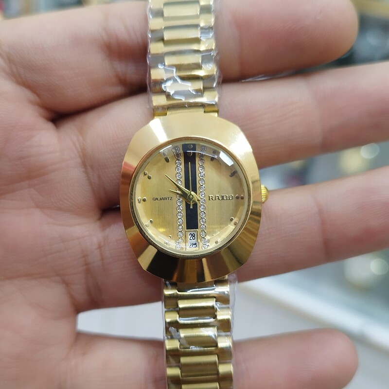 ساعت رادو زنانه صفحه تخم مرغی تقویم دار قفل کشیی رنگ ثابت ضدآب استیل همراه با باتری اشانتیون