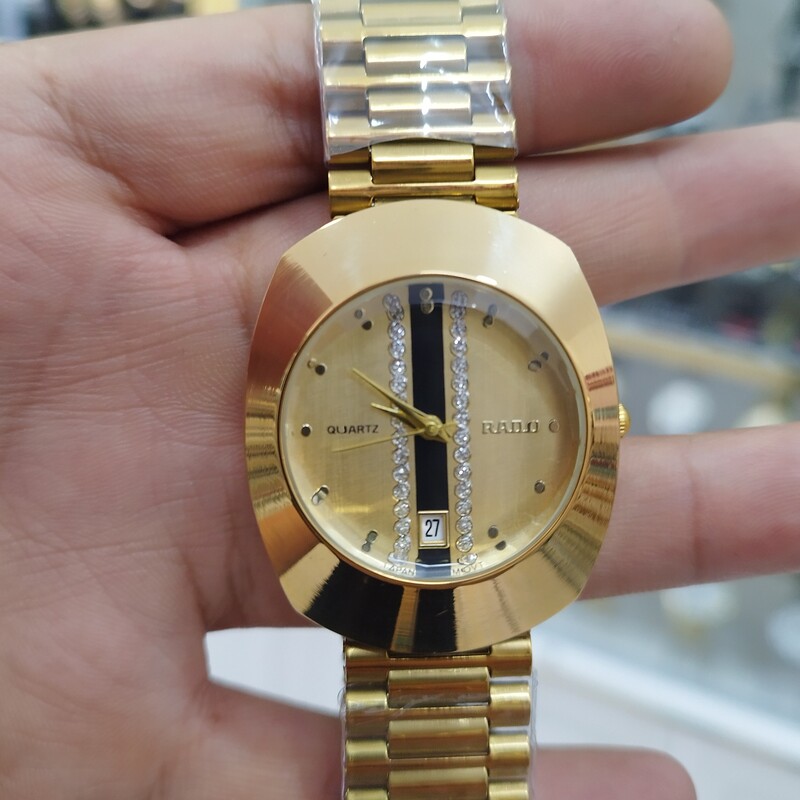 ساعت رادو مردانه صفحه تخم مرغی تقویم دار قفل کشیی رنگ ثابت ضدآب استیل همراه با باتری اشانتیون