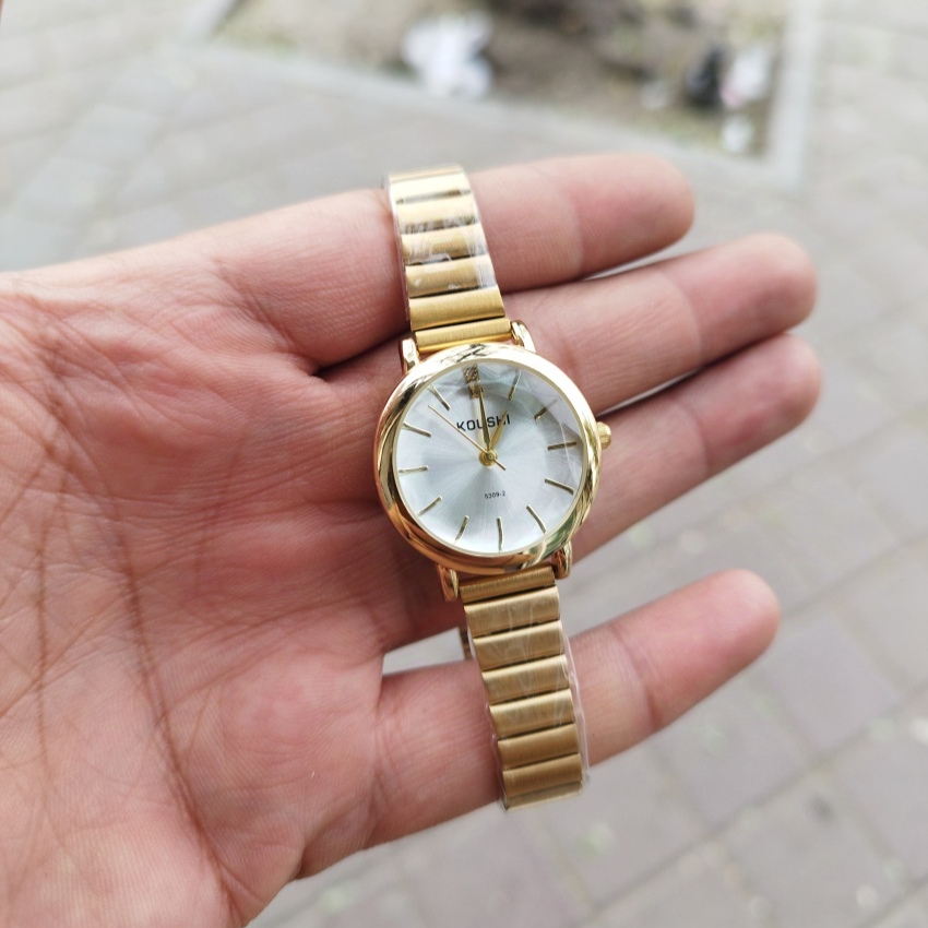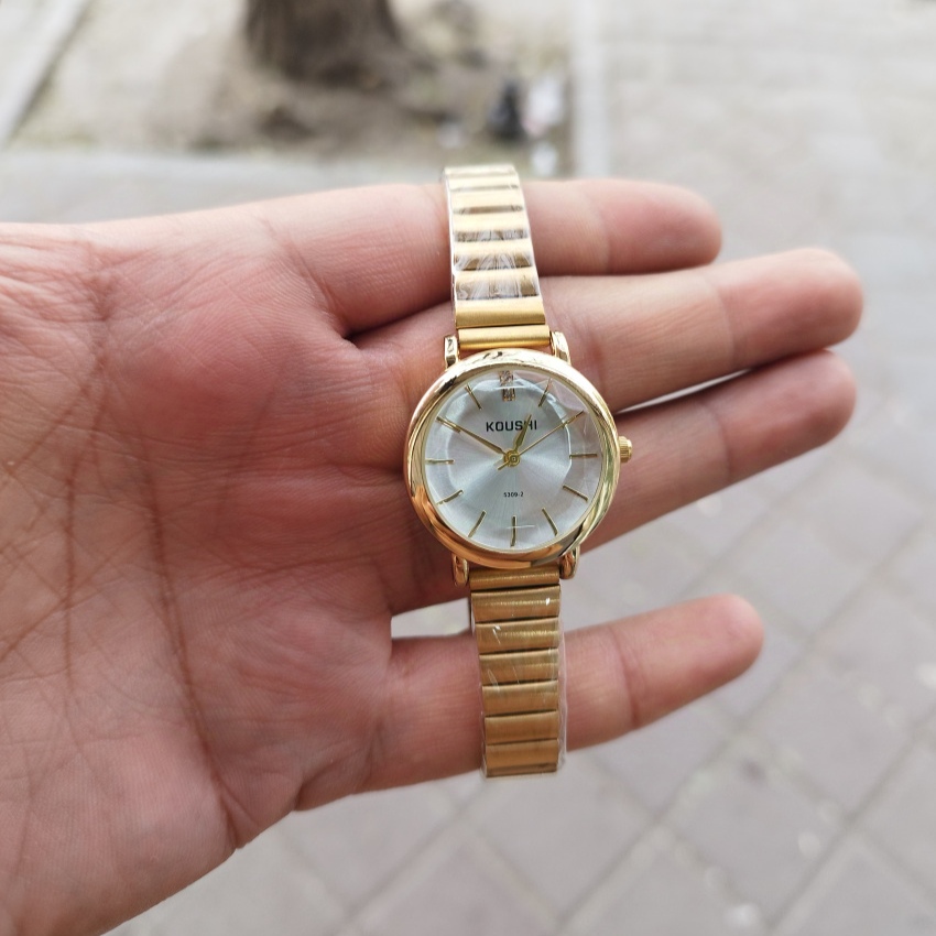 ساعت زنانه دخترانه صفحه گرد شیشه تراش دار طرح الماس قفل ریلی قابلیت کوتاه شدن اسان استیل رنگ ثابت ضدآب با باتری اشانتیون