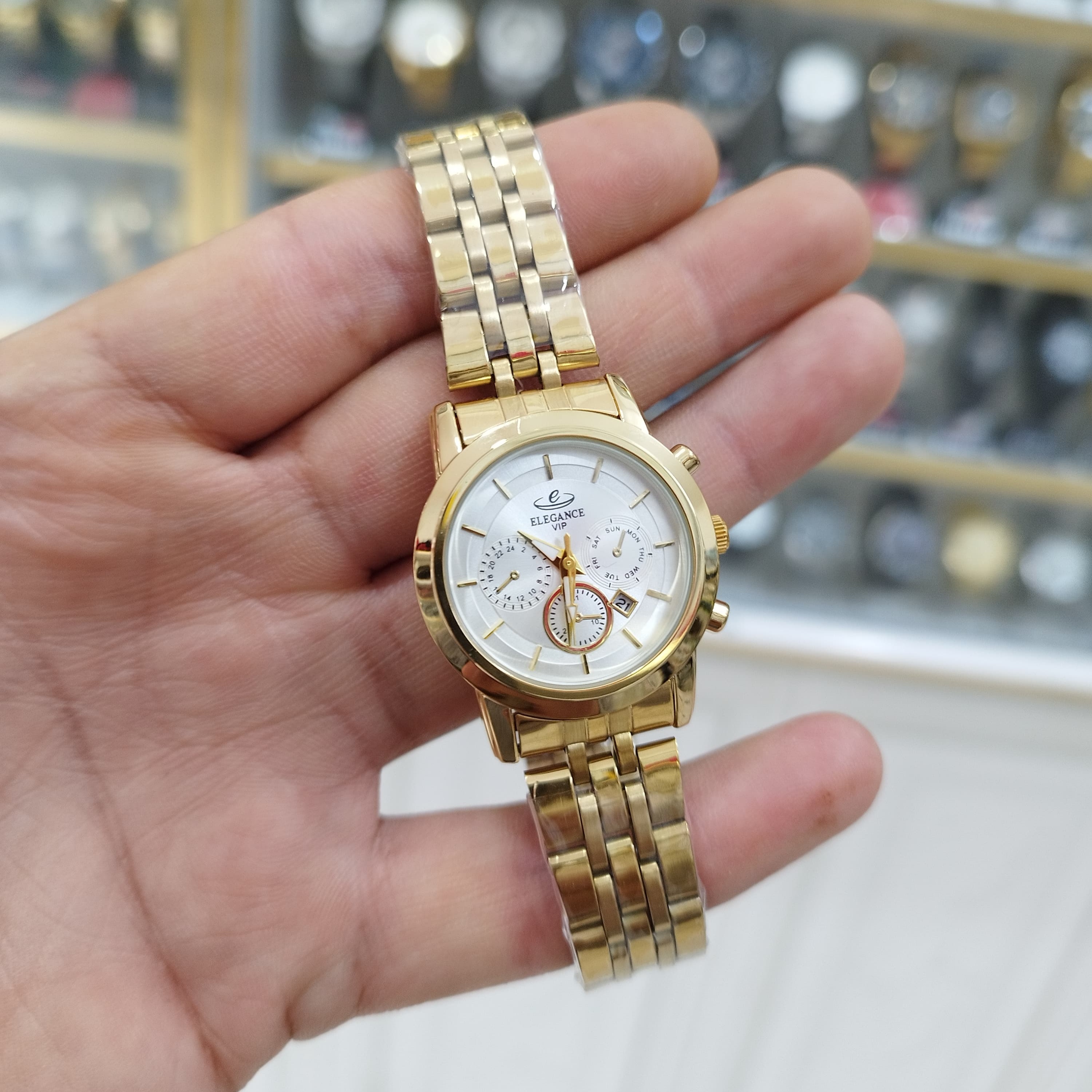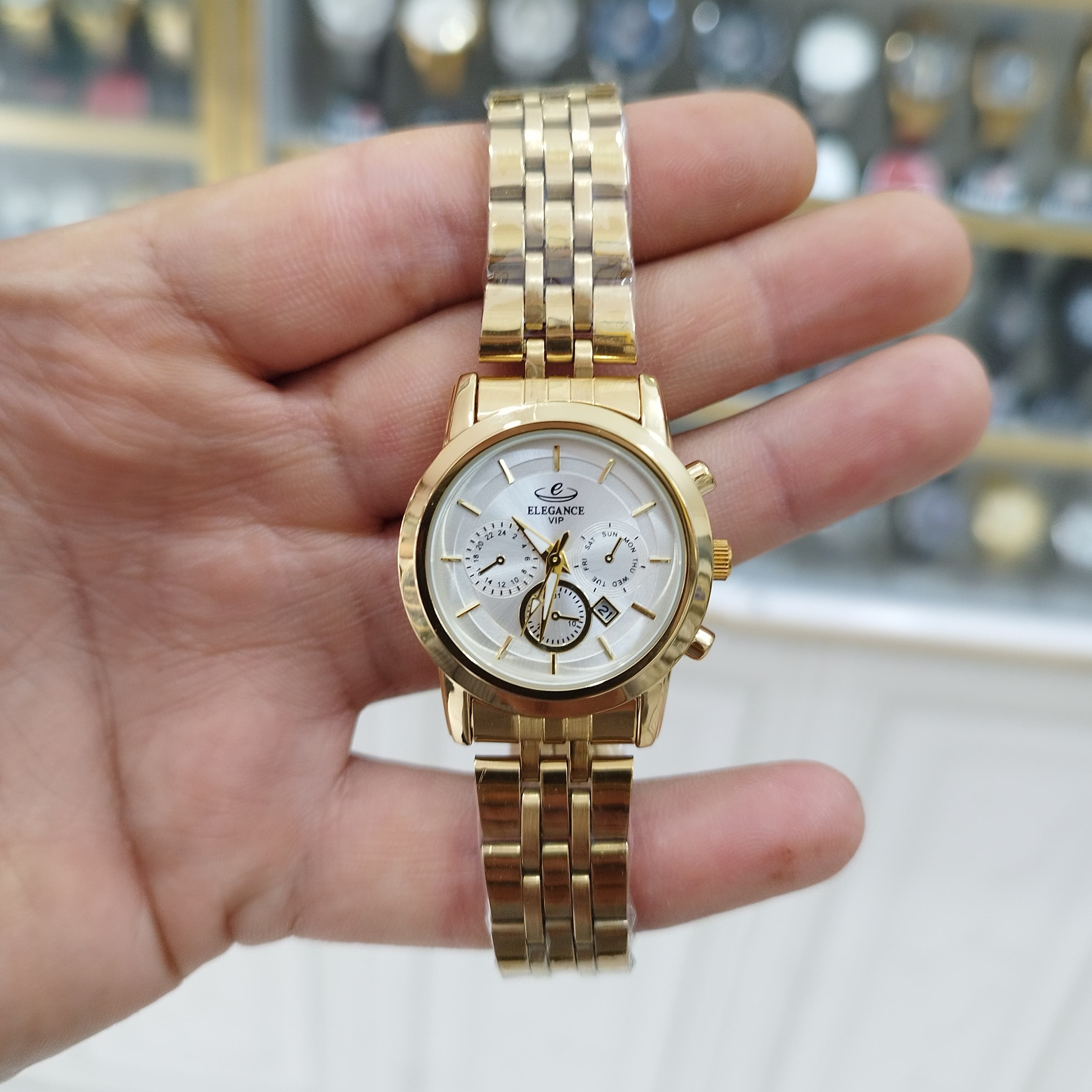 ساعت الگانس vip زنانه تقویم دار طرح 3 موتور استیل رنگ ثابت ضد آب ارسال رایگان با جعبه رایگان و باتری اشانتیون