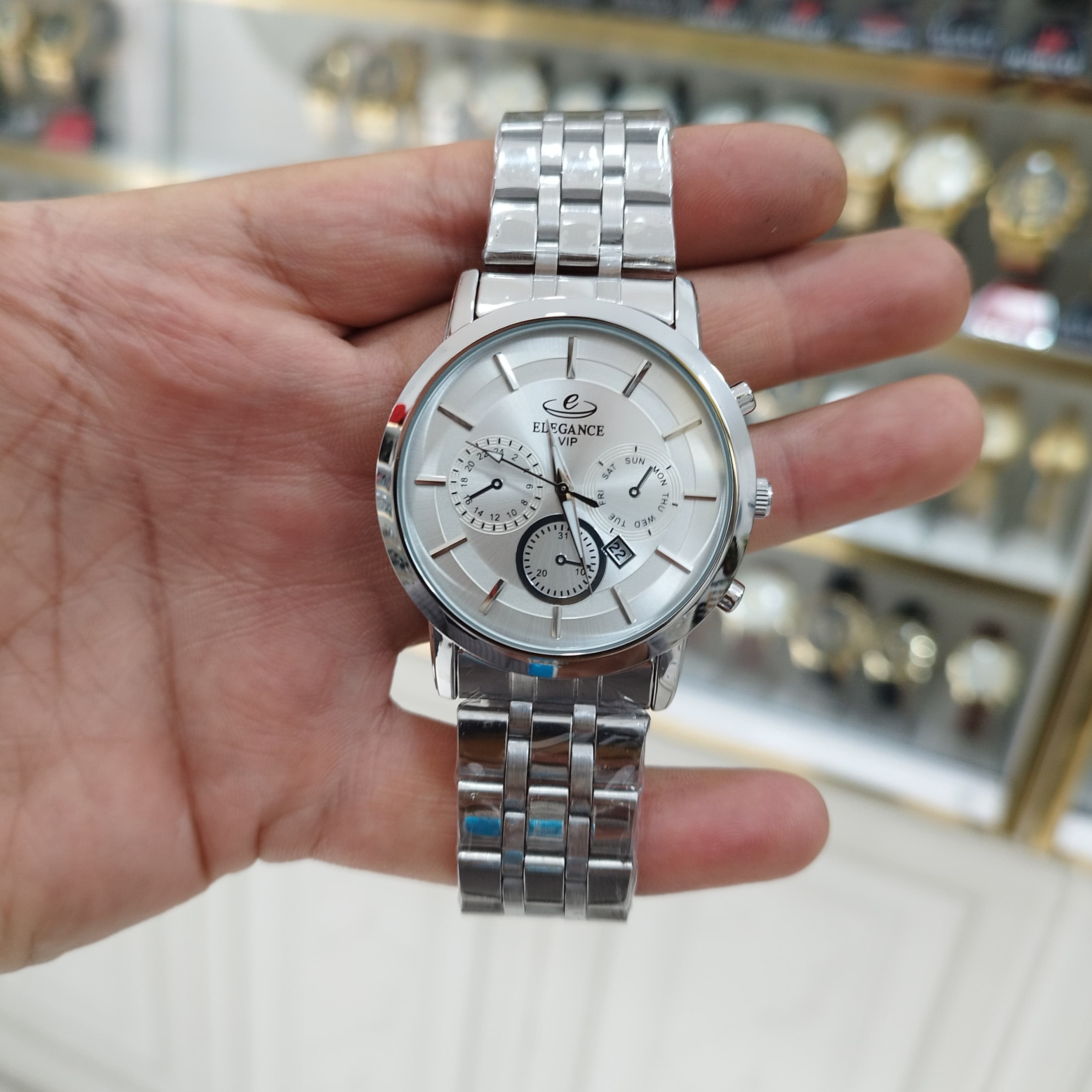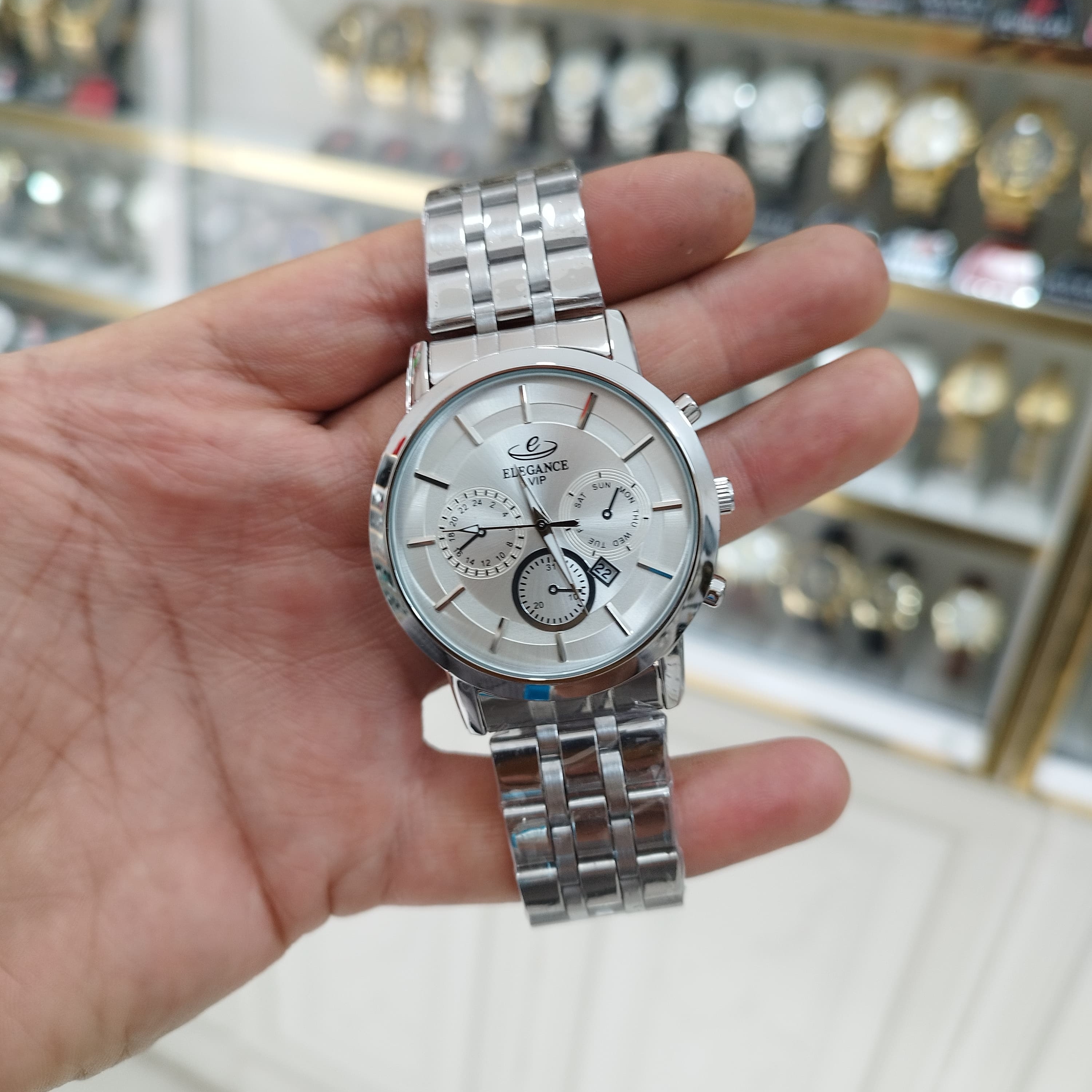 ساعت الگانس vip مردانه تقویم دار طرح 3 موتور استیل رنگ ثابت ضد آب ارسال رایگان با جعبه رایگان و باتری اشانتیون.