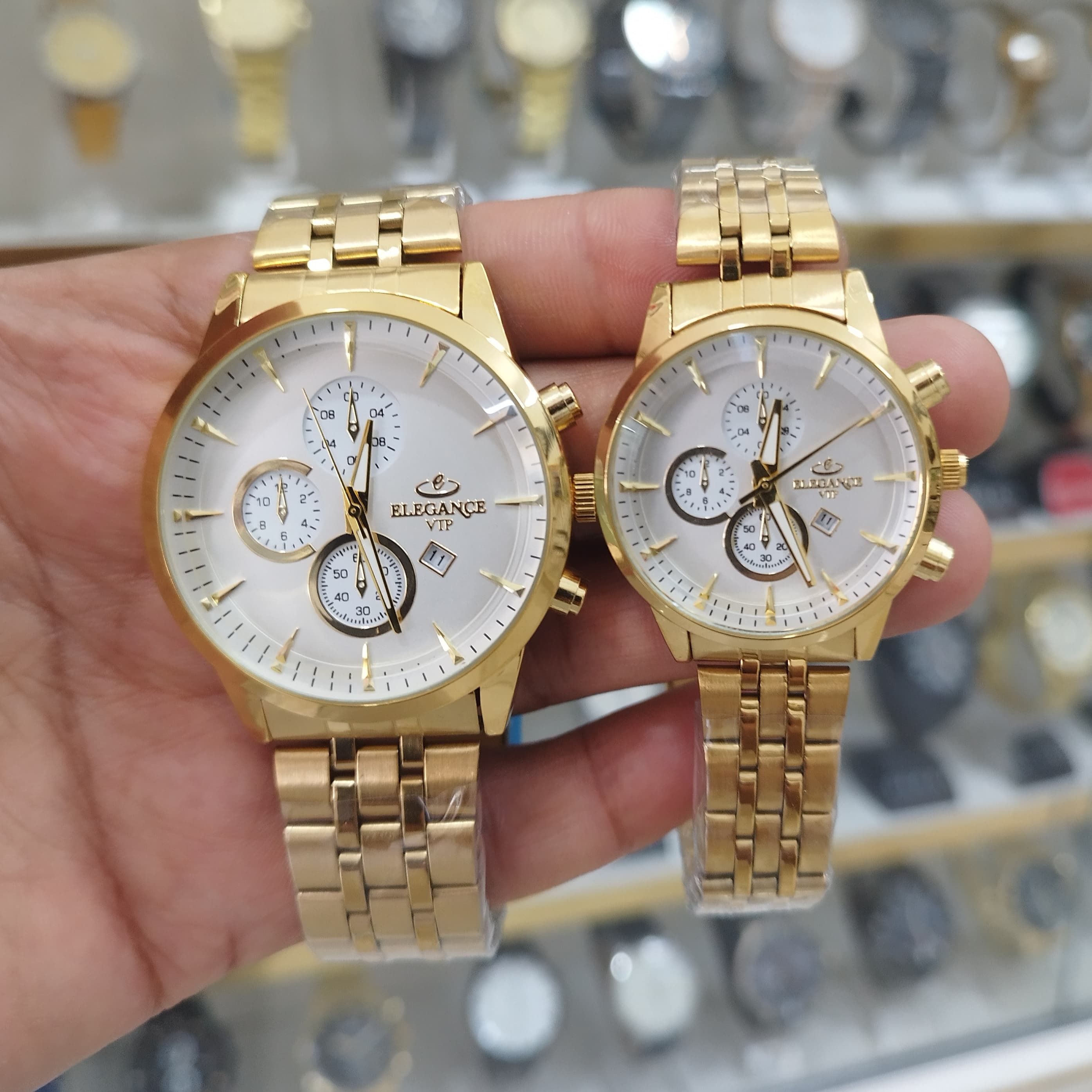 ساعت الگانس vip ست زنانه و مردانه تقویم دار طرح 3 موتور استیل رنگ ثابت ضد آب ارسال رایگان بادوتا جعبه ودوباتری اشانتیون.