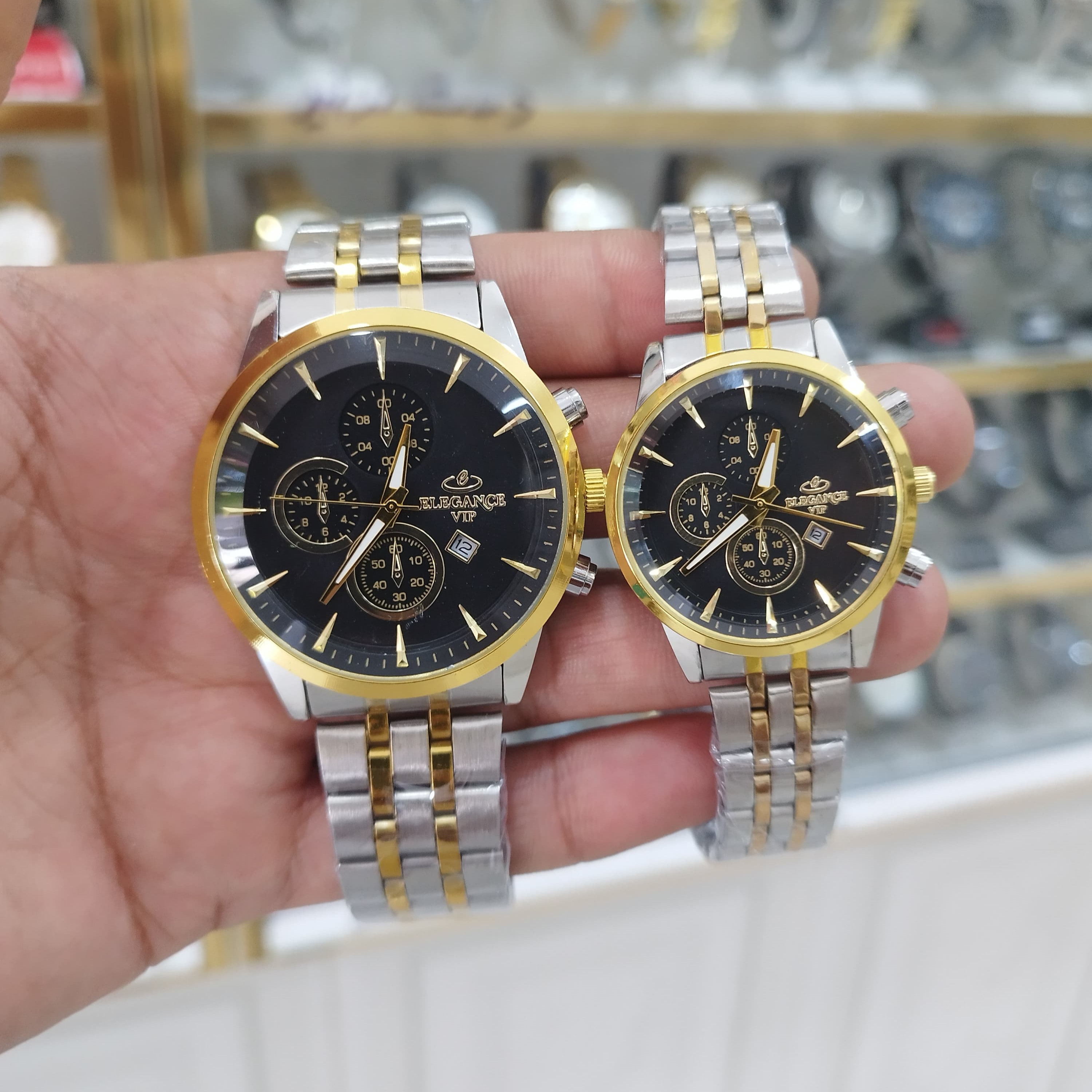 ساعت الگانس vip ست زنانه و مردانه تقویم دار طرح 3 موتور استیل رنگ ثابت ضد آب ارسال رایگان بادوتا جعبه ودوباتری اشانتیون*
