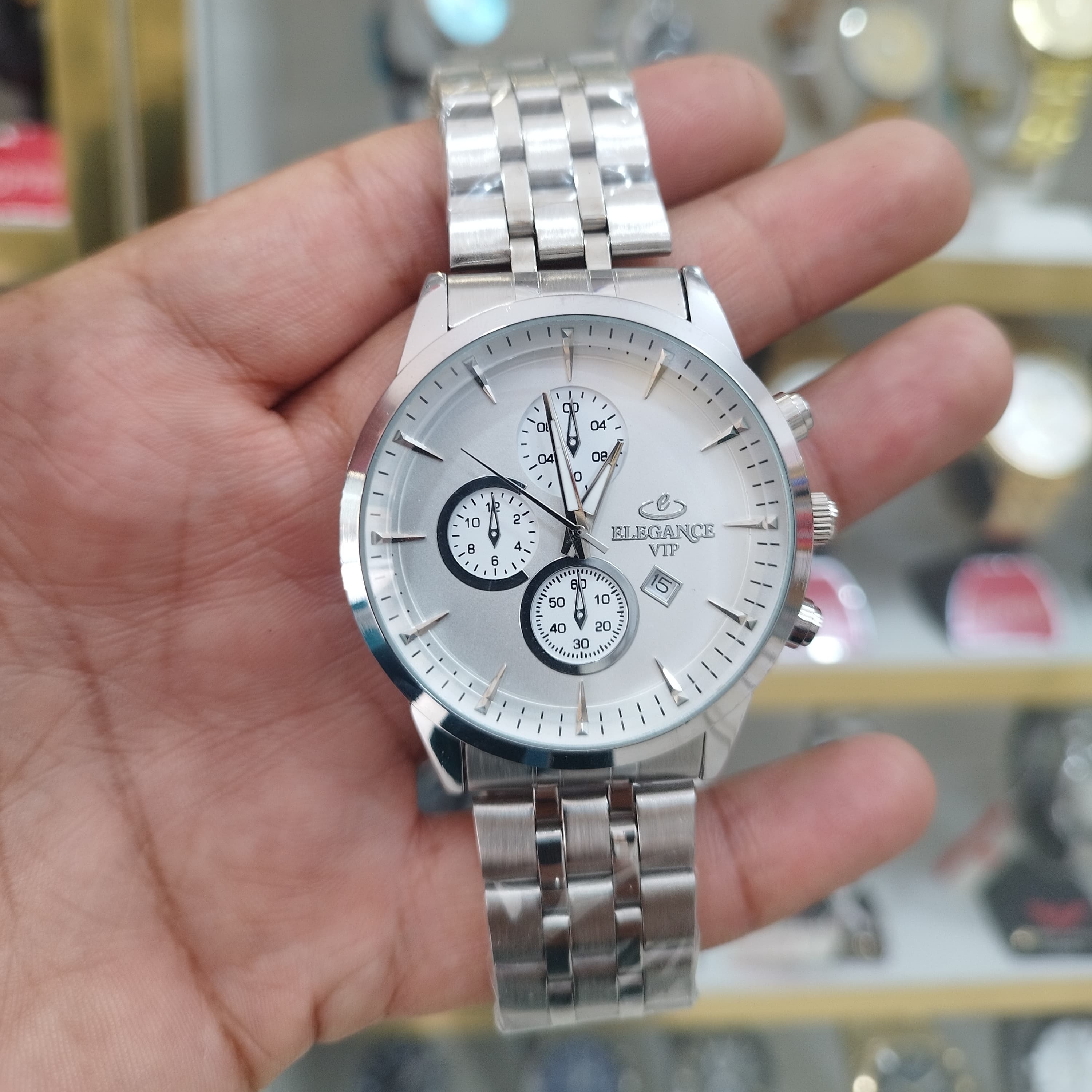 ساعت الگانس vip مردانه تقویم دار طرح 3 موتور استیل رنگ ثابت ضد آب ارسال رایگان همراه باجعبه رایگان وباتری اشانتیون+