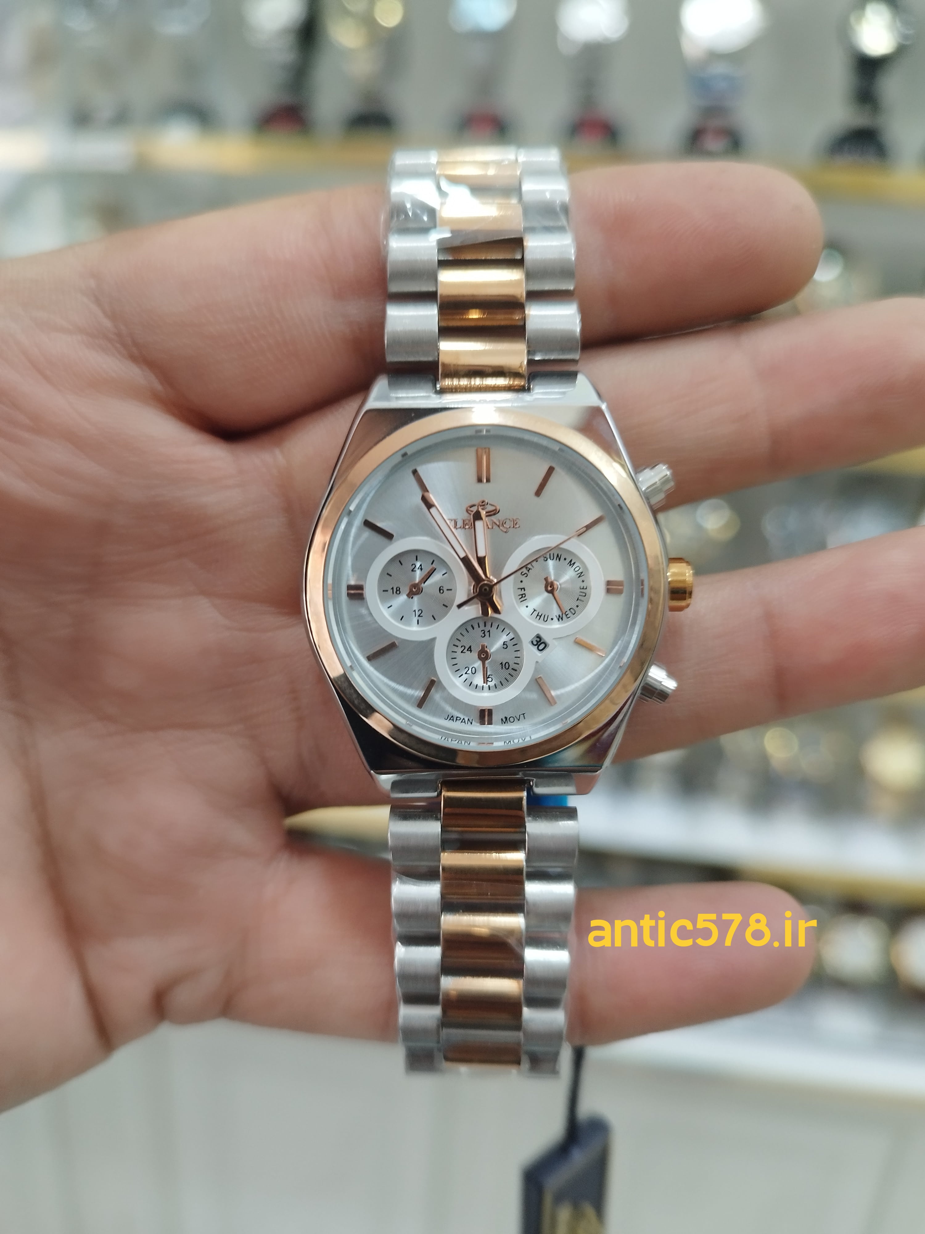 ساعت زنانه الگانس تقویم دار طرح 3موتور استیل رنگ ثابت ضد آب ارسال رایگان همراه با باتری اشانتیون و جعبه رایگان