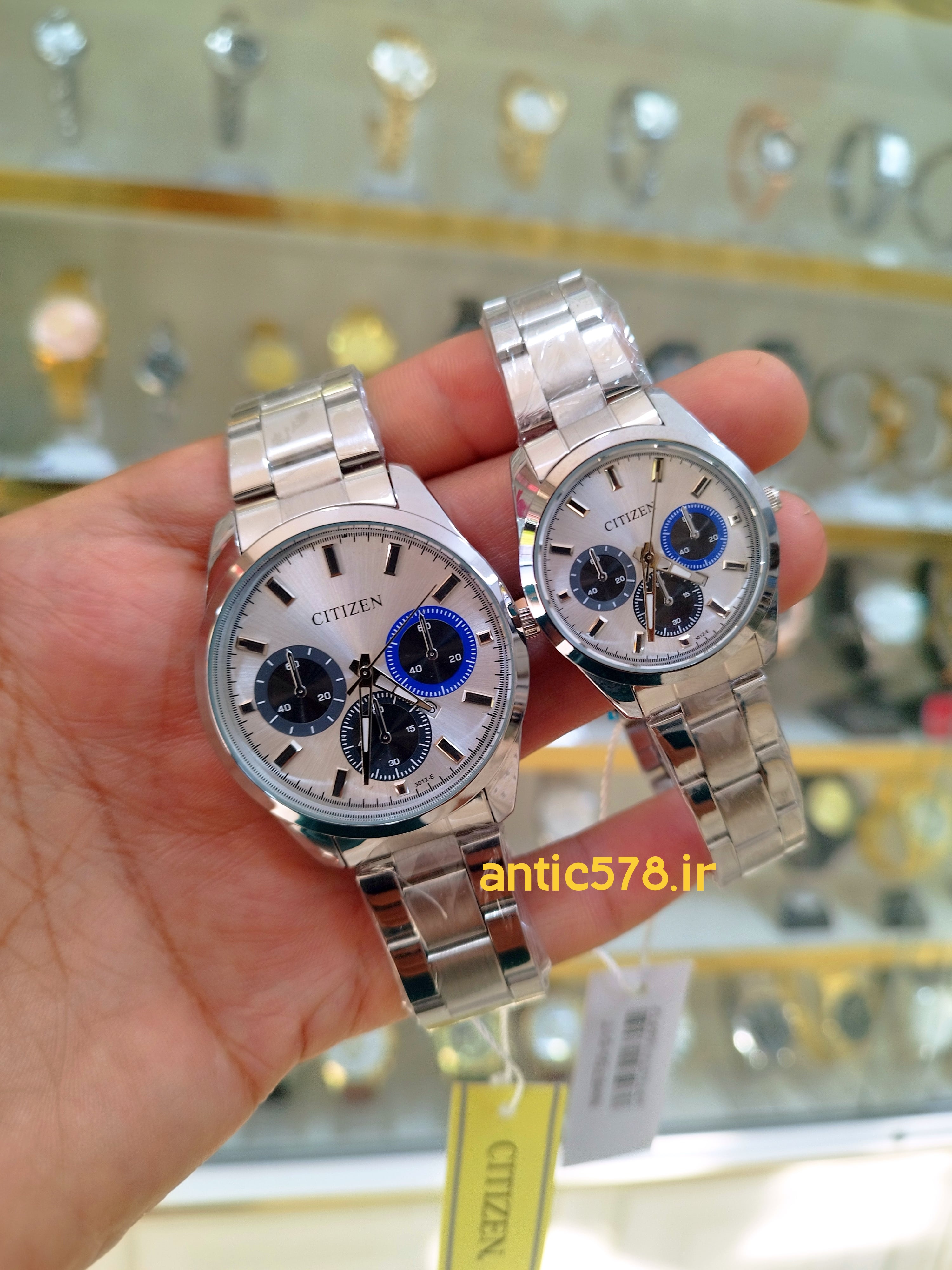 ساعت سیتیزن ست زنانه و مردانه تقویم دار ضدآب رنگ ثابت ارسال رایگان همراه بادوتاجعبه رایگان و2 باتری اشانتیون