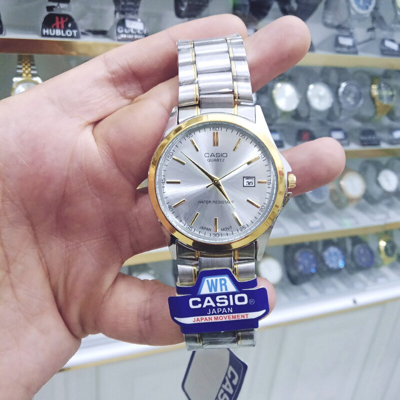 ساعت مردانه کاسیو تقویم دار داخل صفحه و پشت ساعت هم حک شده ژاپن ضد اب رنگ ثابت همراه با باتری اشانتیون